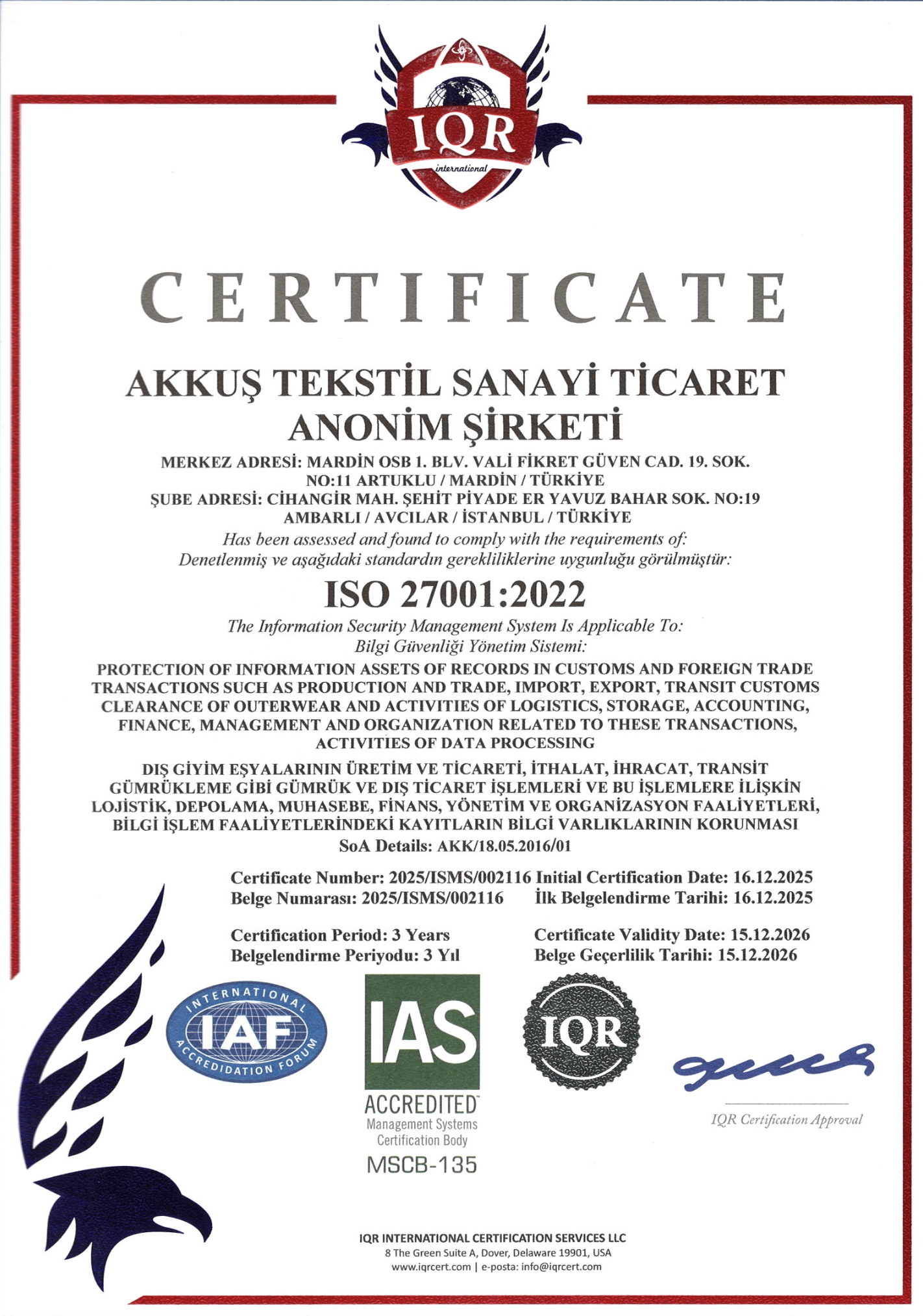 30 yılı aşkın deneyimiyle Akkuş Tekstil, sadece bir üretici değil, aynı zamanda dünya çapındaki önde gelen moda markaları için uzun vadeli ve güvenilir bir üretim merkezidir.